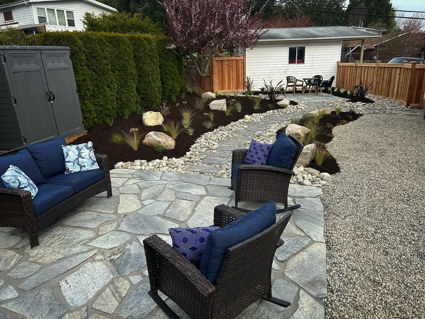 Hardscaping: installation of flagstone, stepping stones, brick and more.